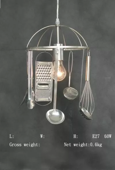 Hauska kattovalaisin keittiövälineillä, metallia 25x25x38k cm