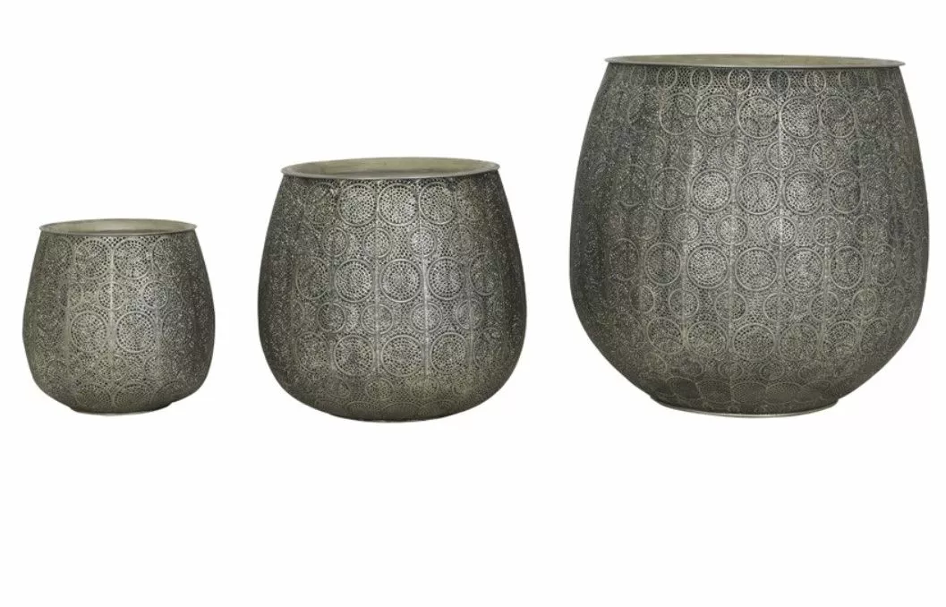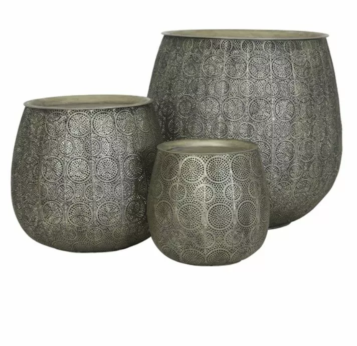6732323 – Side table S/3 max Ø50×56 cm CHUDA antique silver-ant. gold