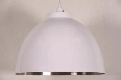 Kattovalaisin Halkaisija 45cm, korkeus n. 40cm. E27 40W, kiiltävä valkoinen ulkoa, hopea sisältä.