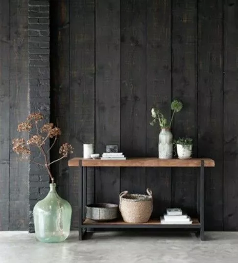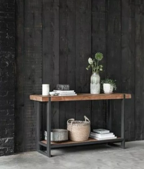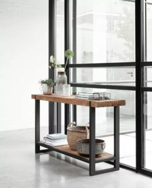Sivutaso Beam on valmistettu teakista ja viimeistelty metallikehyksellä.