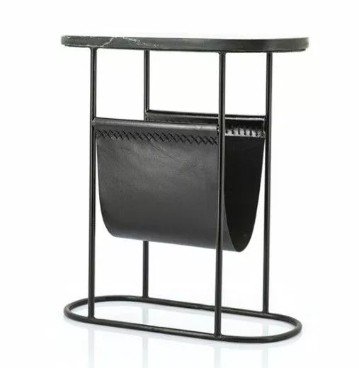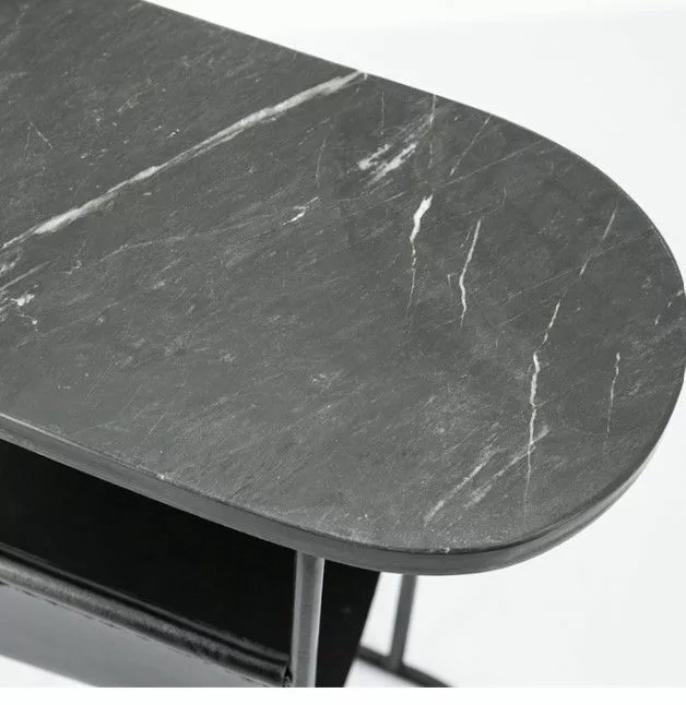 Marmori- / kivikansi metallirunko, lehtiteline osa mustaa nahkaa