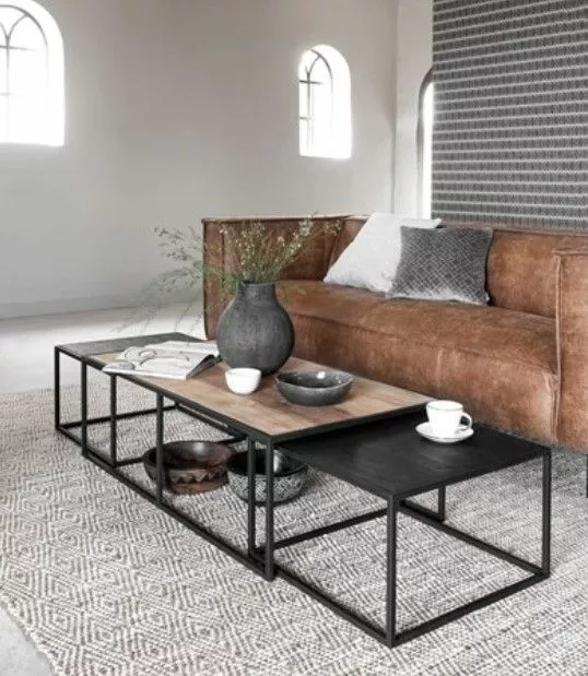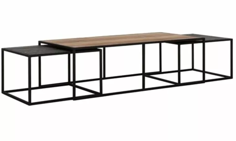 Cosmo-sohvapöytä yhdistelmä yhdistää luonnollisen ja mustan teakin, joten se on silmiinpistävä ulkonäkö.