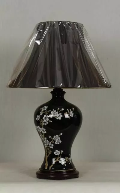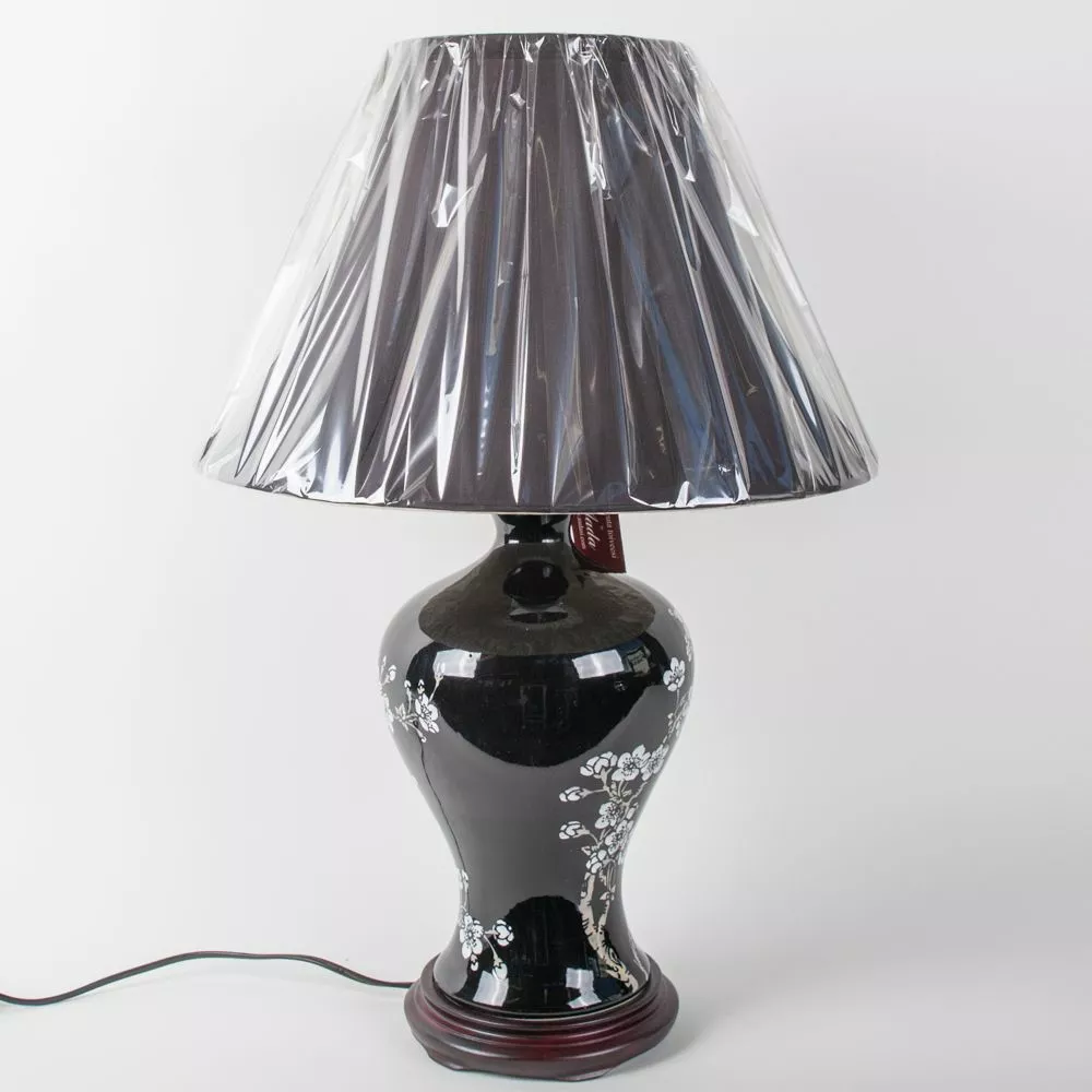 71X41CM KxL, Pöytävalaisin, musta keramiikkarunko, valkoiset kukat.