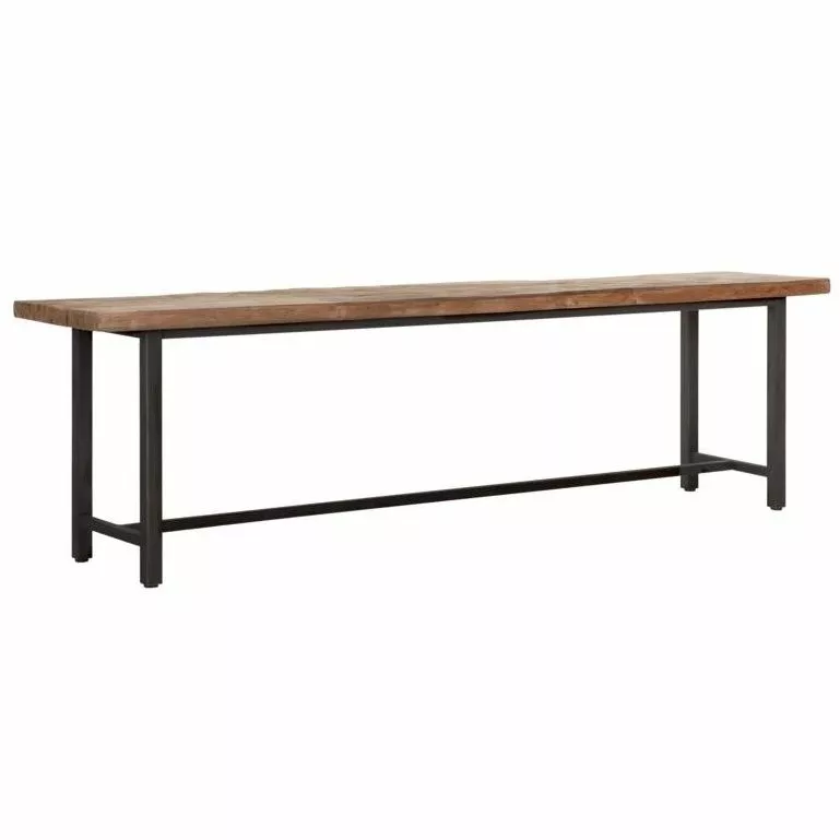 Penkki Beam on valmistettu teakista ja siinä on musta metalli kehys.