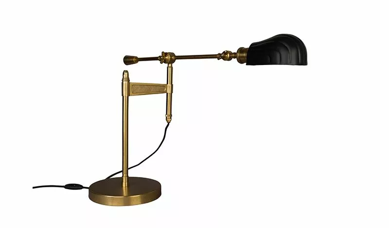 Musta- ja messinki jauhemaalattu pöytävalaisin.