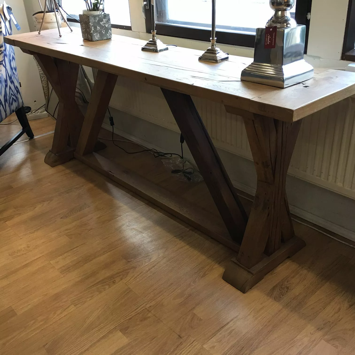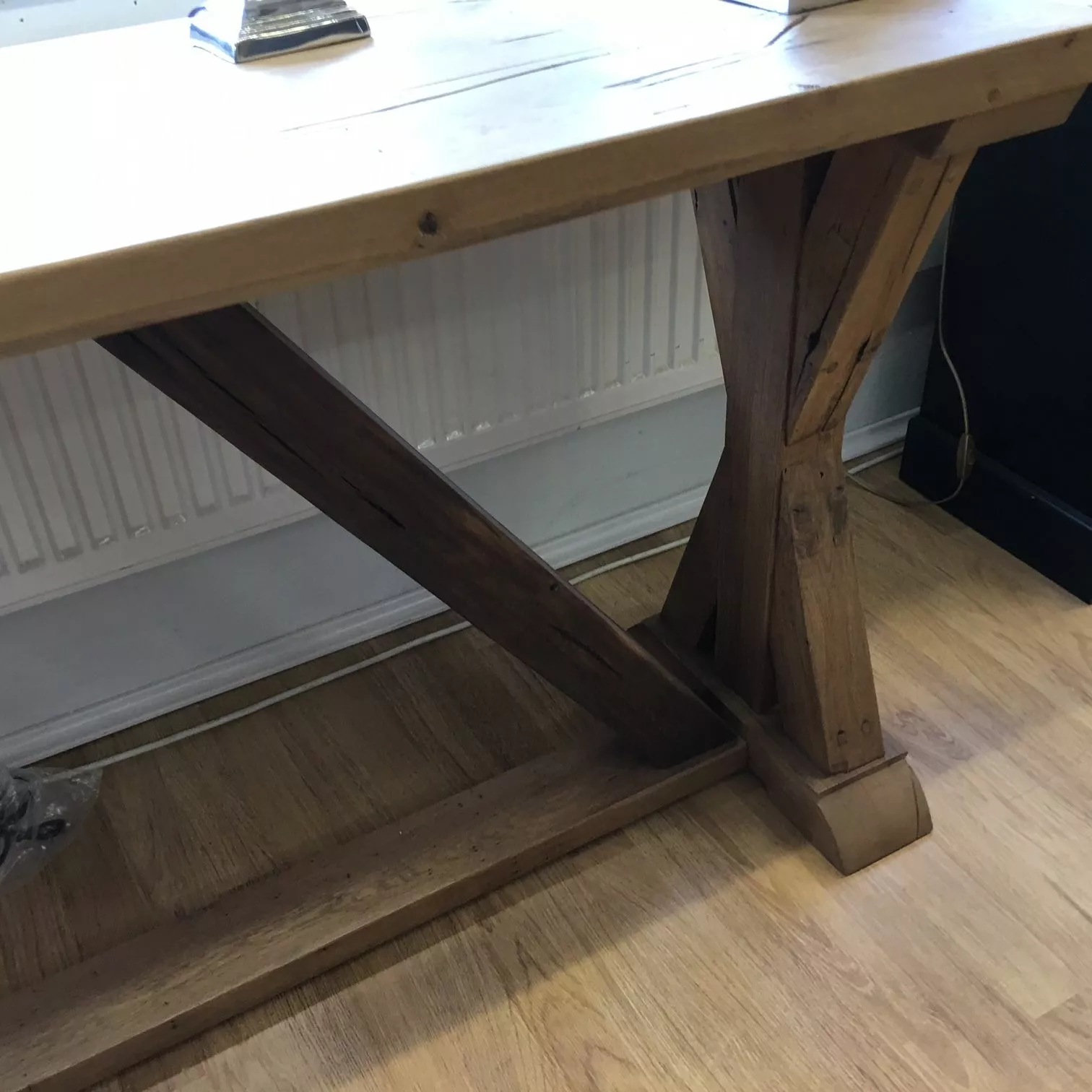 Hinta kierrätystammelle, jokainen pöytä valmistetaan käsityönä.