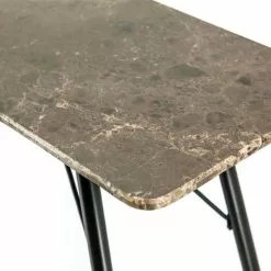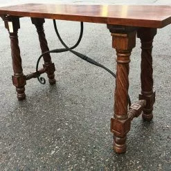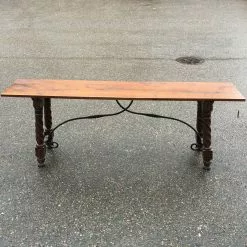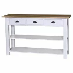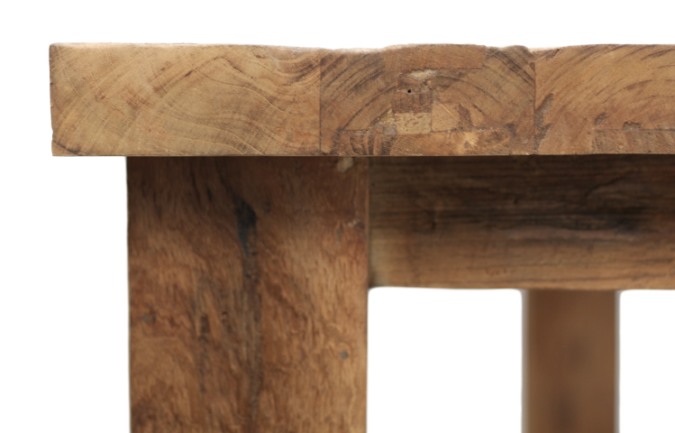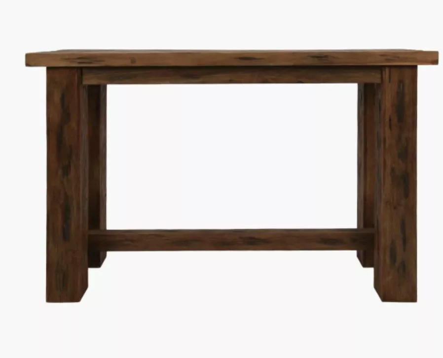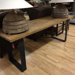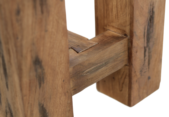 Tämä konsolipöytä antaa rohkean lausunnon vankalla vanha teak-puurakenteella. Mustat ”harjatut” yksityiskohdat antavat konsolin pöydälle maaseudun ilmeen.